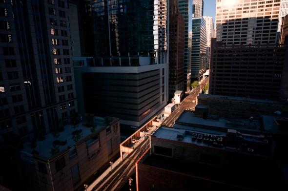 I took a motorcycle ride to Chicago today. I got a late start, so I was only there for a couple hours. Most of that time was spent on the top of a parking structure, photographing nearby buildings.