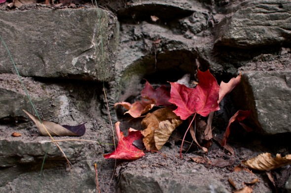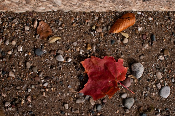 A couple leaves and rocks, as found at Grant Park.