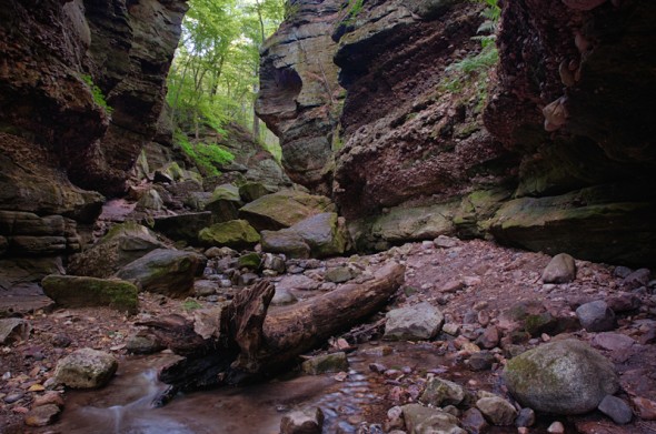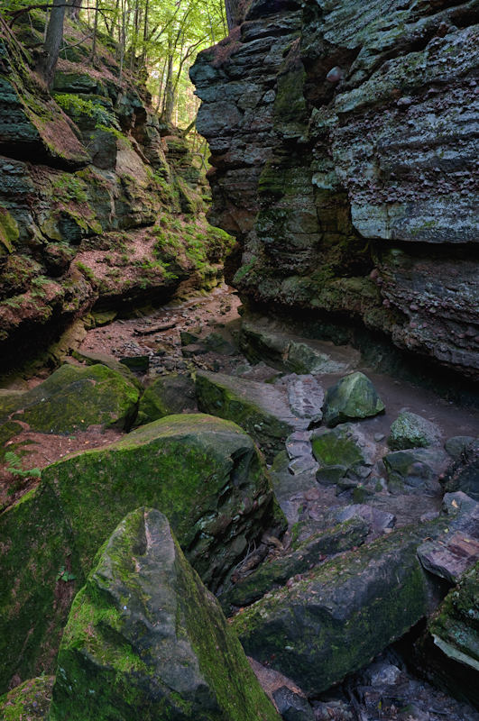 I took a walk through Parfrey’s Glen this afternoon. It was busier than usual, so I had to wait around a lot for all signs of human life to remove themselves from my photos. It was beautiful out today, so I can understand why is was kinda crowded. I wouldn’t have complained if the stream was more of a torrent than a trickle.I was basically left with just piles of rock to take picture of.